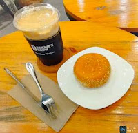 2.38 pm - need to wait till 3 pm so ordered iced long black MYR 10.50 nett and red bean donut MYR 4.50 nett. The coffee is light for a double and has a floral taste.